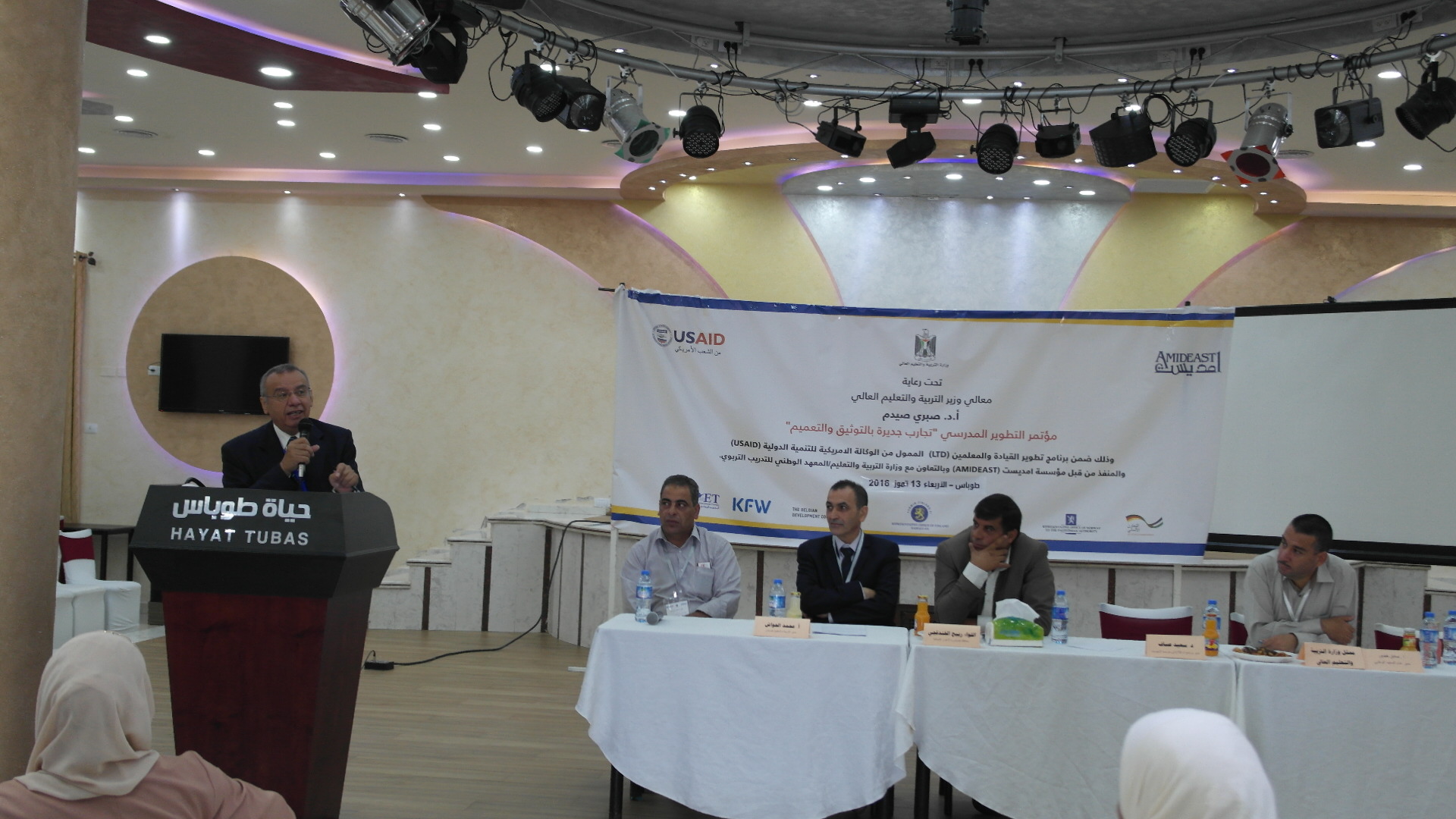 وذكر أ. صادق الخضور القائم بأعمال مدير عام المعهد الوطني أن هذا المؤتمر يأتي ثمرة لجهود مشتركة بين المعهد الوطني للتدريب التربوي، ومؤسسة الأمديست ومديرية التربية والتعليم في محافظة طوباس.إذ قام المعهد الوطني للتدريب التربوي بالتعاون مع الأمديست ضمن برنامج تطوير القيادة والمعلمين (LTD) الممول من الوكالة الأمريكية للتنمية الدولية،بتأهيل ما يقارب47معلماً/ةفي محافظة طوباس في خمسة مباحث، وهي: اللغة العربية، اللغة الانجليزية، الرياضيات، العلوم، والتكنولوجيا, بالإضافة إلى تأهيل 12 مديراً/ة. وتضمن البرنامج تأهيل البنية التحتية للمدارس، خاصىة في مجال تأهيل شبكات الانترنت والحواسيب والألواح الرقمية التفاعلية التي تم تزويد المدارس بها، كما تم تأهيل مركز التدريب في المديرية، واضاف الخضور ان البرنامج يشكل علامة فارقة على مدار السنوات الثلاث الماضية، حيث يركز البرنامج على تعزيز القيم والسلوك والتعليم المتمركز حول المتعلم ويجعل باب الطموح مشرعاً على مصراعيه أمام المعلمين وقادة الميدان التربوي .