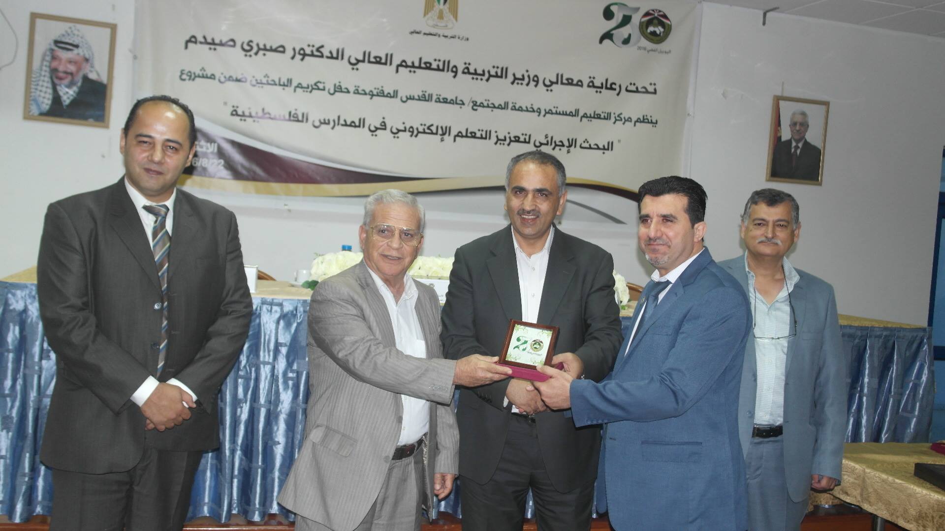 وشارك في الحفل وزير التربية والتعليم العالي د. صبري صيدم، ووكيل الوزارة د. بصري صالح، ورئيس جامعة القدس المفتوحة د. يونس عمرو، و عبر سكايب خبير من جامعة القدس المفتوحة في قبرص د. ثيناسيز هادزيلكوس، ومدير مركز التعليم المستمر وخدمة المجتمع أ. محمود حواميد، ومدير المشروع د. يوسف صباح، والقائم بأعمال مدير عام المعهد الوطني للتدريب التربوي صادق الخضور، وعدد من المديرين العامين في الوزارة ومديري التربية وغيرهم من الشخصيات الرسمية والأكاديمية والأسرة التربوية.